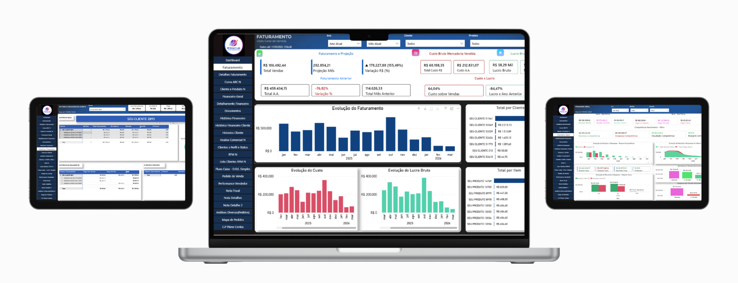 Transformamos dados brutos em dashboards claros, estratégicos e fáceis de usar no Power BI.